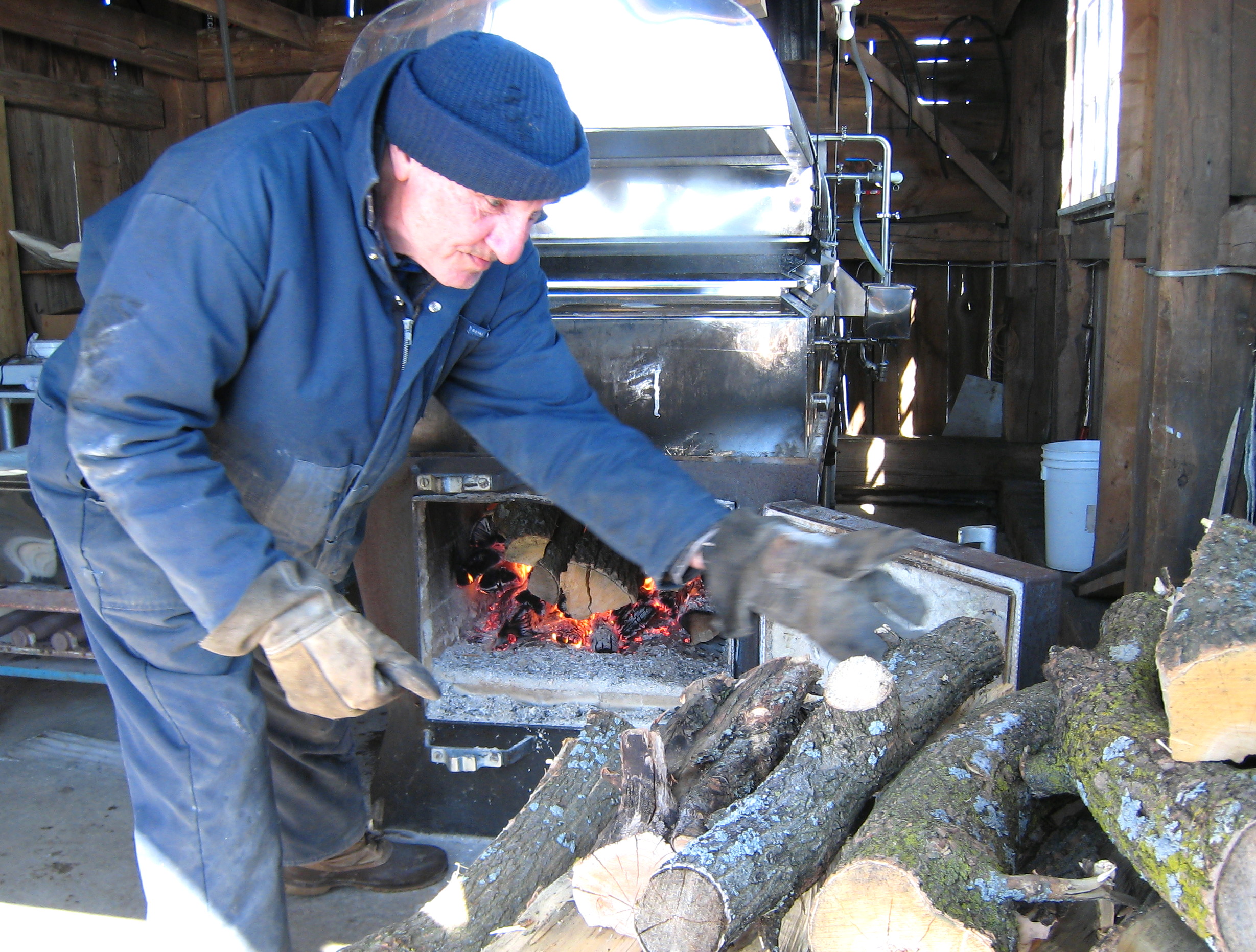 Depending on the weather, they generally tap in early March, and boil whenever the sap runs — anytime up to mid-April, whenever nights are freezing and days are above 0.